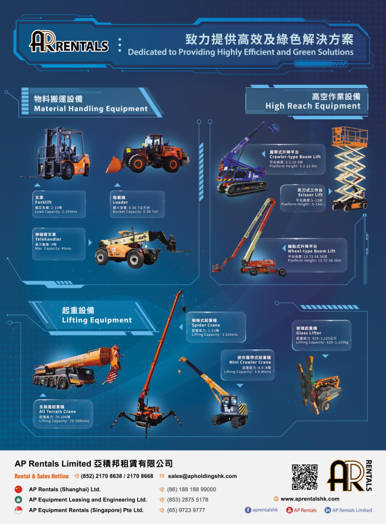 We are a leading equipment rental service company in Hong Kong, with the capability of providing equipment rental related solutions and value-added services to our customers. We focus on construction, E&M engineering and Event and Entertainment equipment, which include power and energy equipment, high-reach equipment and material handling equipment.